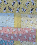 This quilt is pure happiness in fabric form. The Cuddly Countryside prints are bursting with personality—think cheerful farm animals, bright colors, and whimsical details that make every block feel like a story. From curious cows to playful pigs, these fabrics bring a lighthearted, cozy charm that kids (and honestly, adults too!) can’t resist.